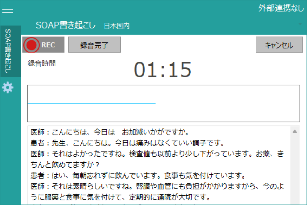患者さんと医師の会話内容から電子カルテを自動作成します